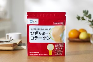 当商品は、ひざ関節の曲げ伸ばしを助ける、コラーゲンペプチド配合の機能性表示食品です。体内のコラーゲンは、軟骨などを形成する、関節にかかる外部の力をクッションのようにしっかり受け止め、軽やかな動きを生み出す重要な成分です。しかし、コラーゲンは20歳を超えると急激に減少していき、50歳を超えると20歳の頃の約半分にまでなってしまいます*。これがひざの曲げ伸ばしがつらくなる一因となるため、ひざの曲げ伸ばしがつらくなる前に、早めのケアをすることが重要です。