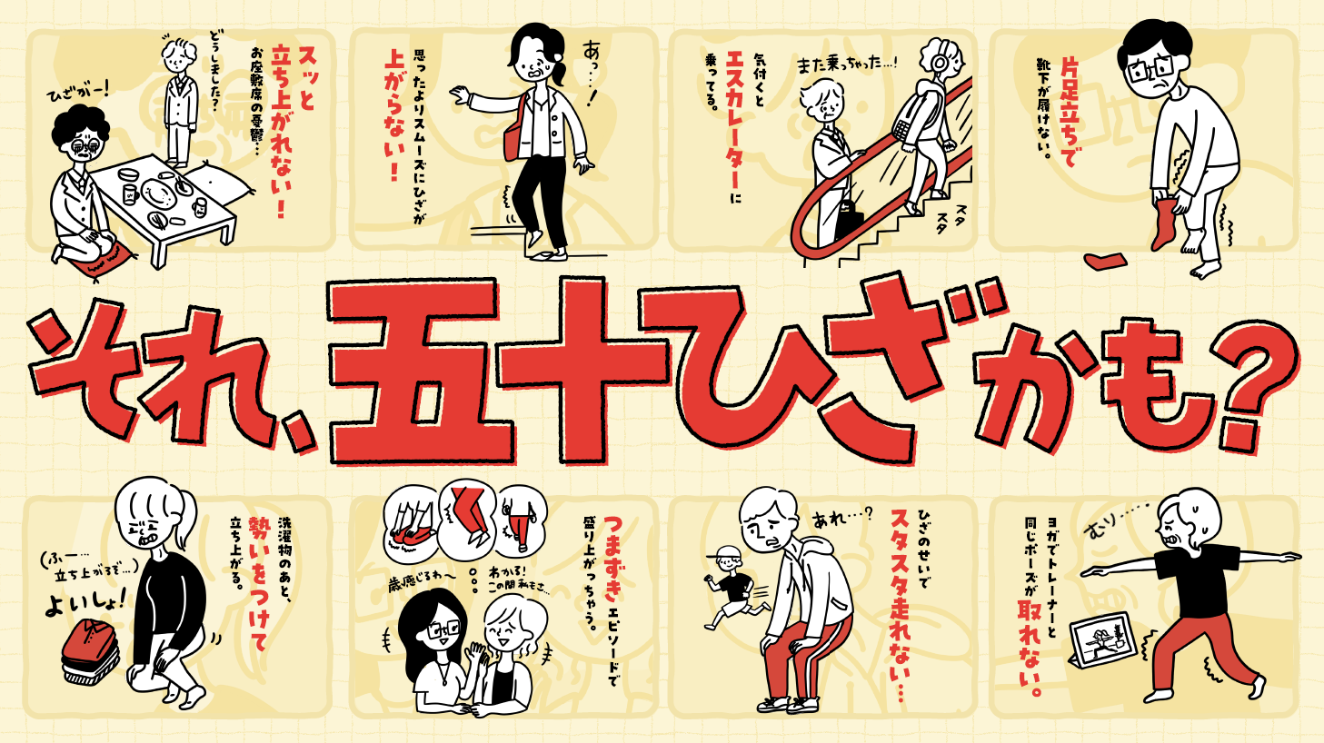 「ひざを気にする年齢はまだまだ先」と考えている方も多いのではないでしょうか。しかし実際には、ひざに違和感を覚え始める平均年齢は50.5歳*と、皆さまが思っているより早くエイジングが始まっているのです。ひざは趣味や運動だけでなく、日常生活にも影響を及ぼす、ウェルエイジングな毎日を送るために重要な部位の一つです。そこで当社では、50代から感じ始める”ひざの曲げ伸ばしの違和感”を「五十ひざ」と定義し、早めのケアを推進するはこびとなりました。